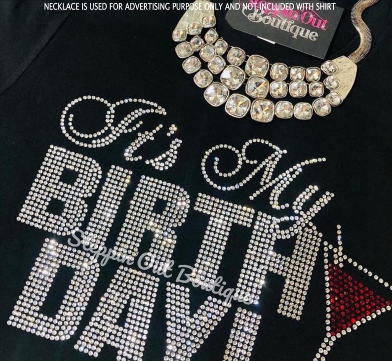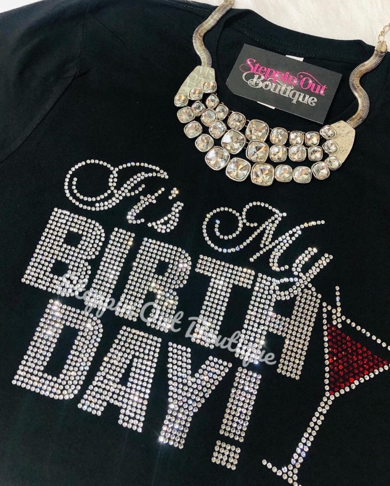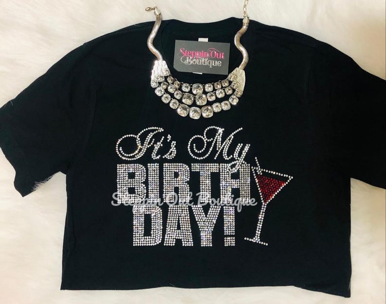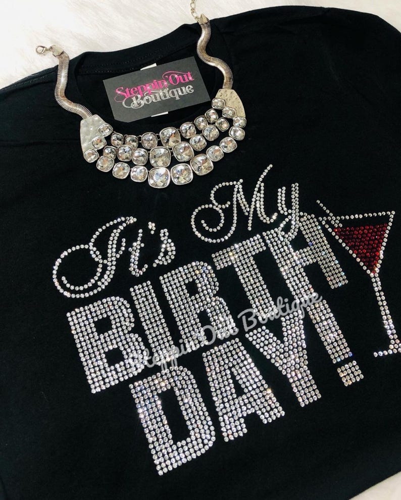 This Listing is for a It's My Birthday Martini Glass Rhinestone Bling Shirt.